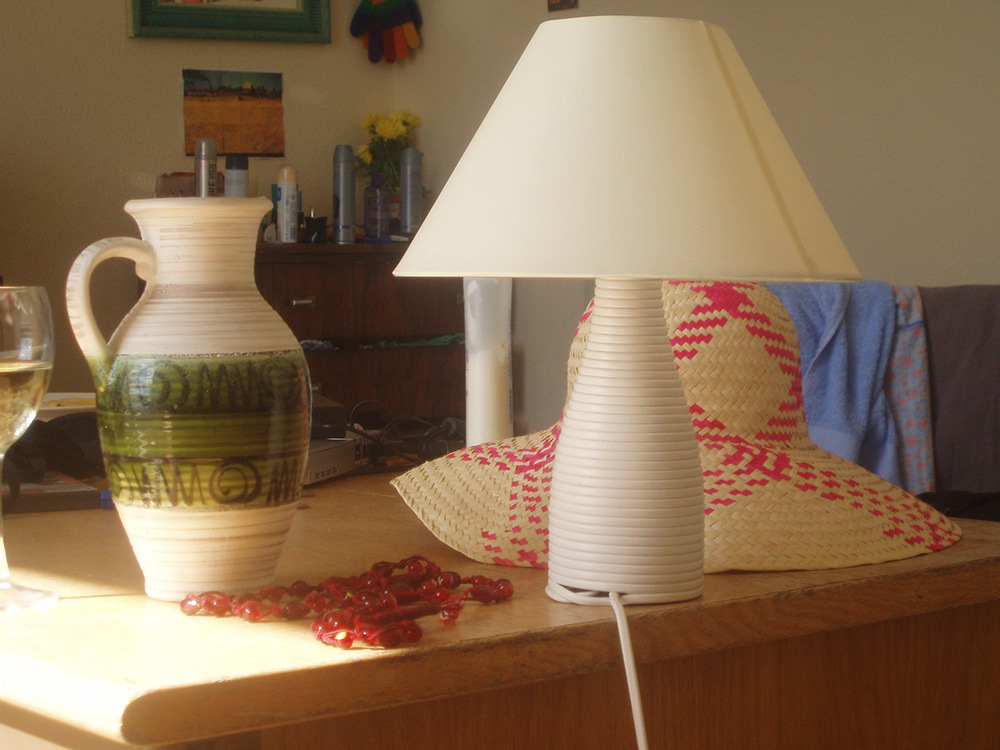 Cable Lamp was formed directly from discarded electrical cables wrapped around a used wine bottle. The cables were heated to create a moulded body, after which the lamp was wired and made functional. The structure of the object is determined entirely by the power cable itself, foregrounding the mechanical components that typically remain hidden. Don’t worry, the main electrical cable runs into the lamp body and not around it.