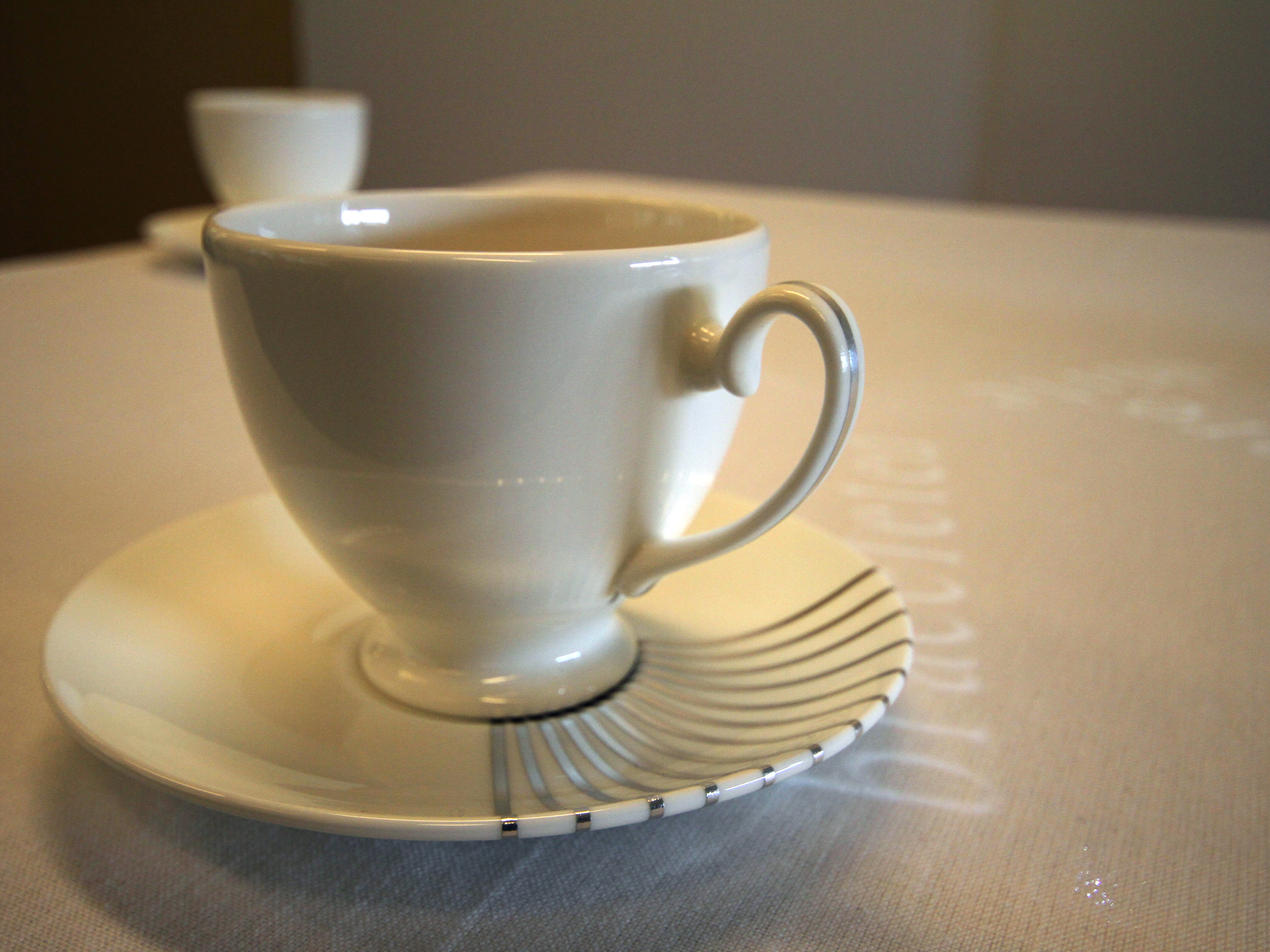The work emerged from engagement with residents and staff at a care home in the south of England, focusing on how everyday domestic objects might support shared reminiscence and conversation. The teaware incorporates a decorative lustre that functions as a sensor, detecting subtle movements of a cup on its saucer. These movements trigger words to appear at different locations on a tablecloth, drawn from residents’ reminiscences and selected poems. The resulting text fragments combine to form varied descriptions open to personal and shared interpretation. In use, participants were able to gently prompt conversation by moving their teacup, particularly during quieter moments.