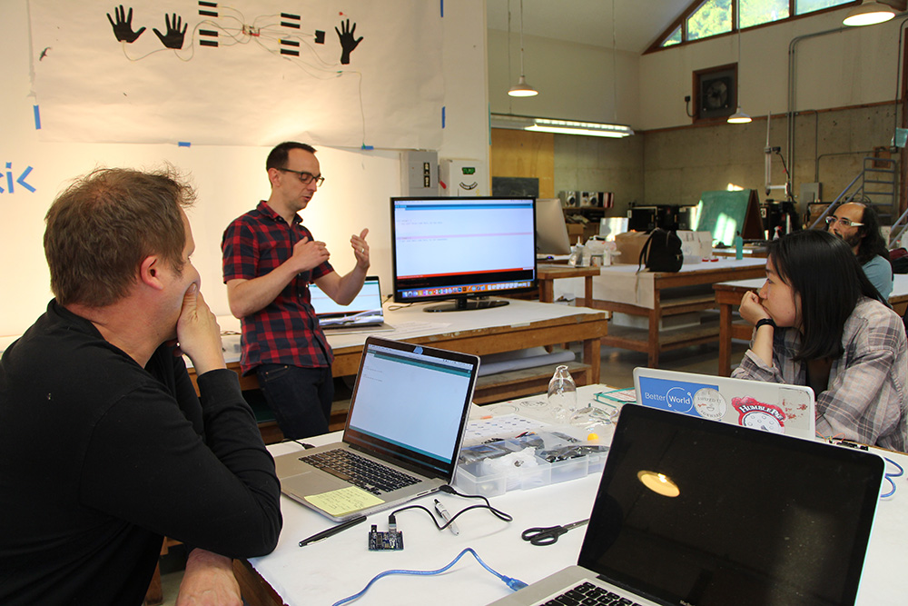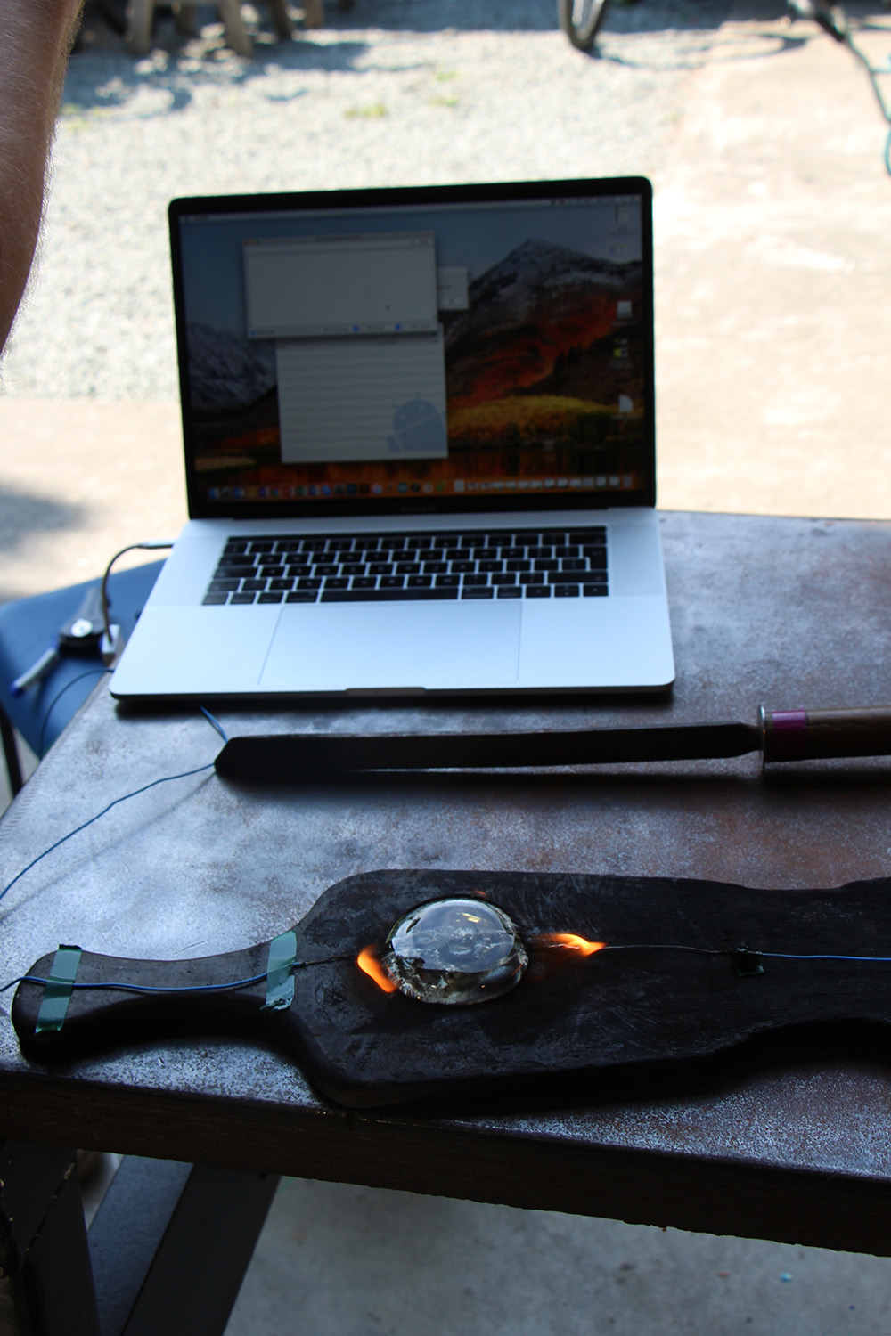 This two-week intensive workshop at Pilchuck Glass School with Mark Hursty (University of North Carolina) explored how glass artists might integrate digital materials, circuits, and sensing technologies directly into hot glass processes. The project investigated the incorporation of conductive metals and smart pigments into glass blowing and casting, examining glass as a potential sensing material rather than a passive form. Participants were introduced to Arduino and Processing to support the development of interactive artefacts combining glass, embedded electronics, and screen-based media. The workshop formed part of ongoing research at Northumbria University and Sunderland University examining glass within Internet of Things (IoT) contexts.